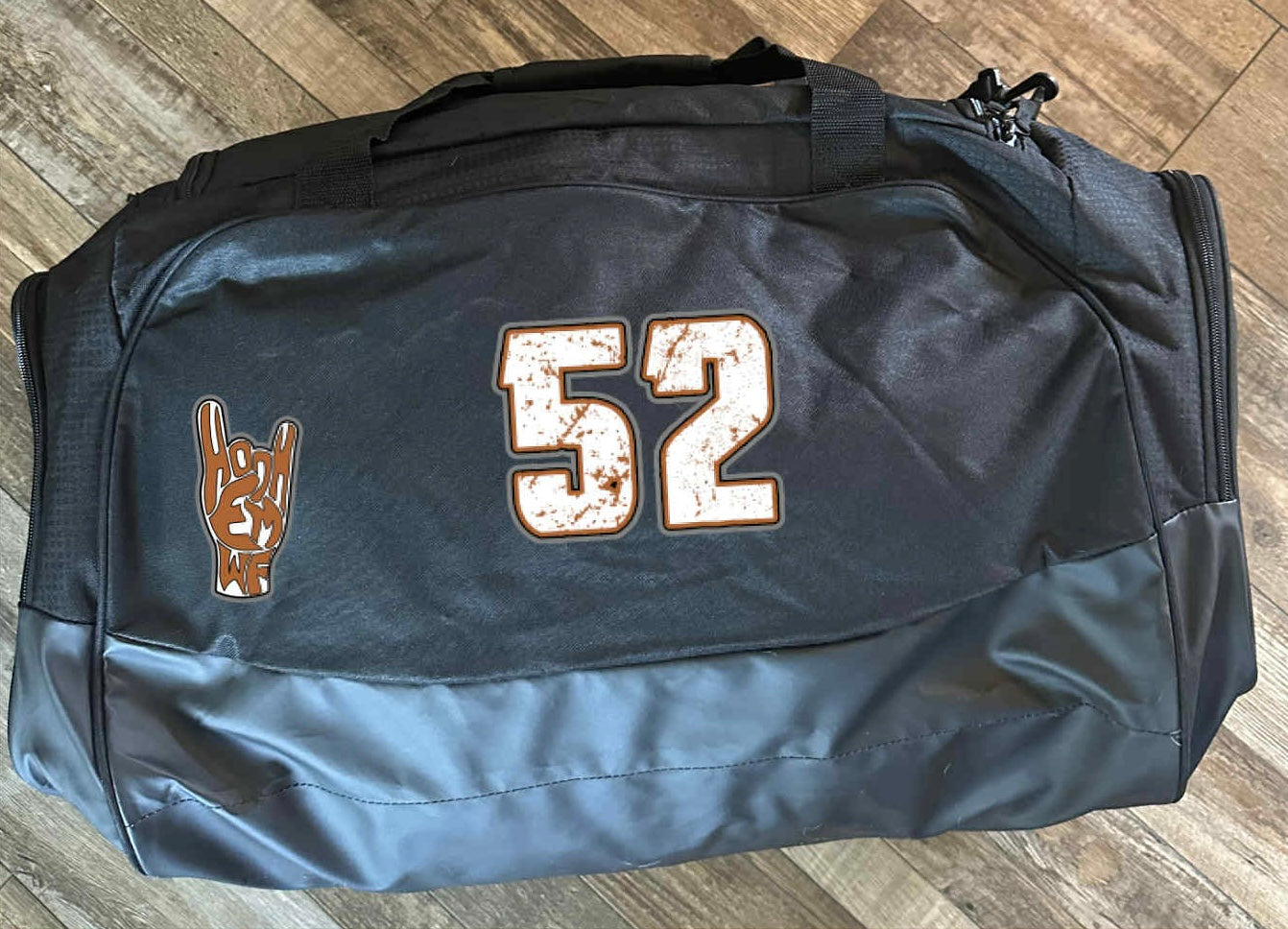 Large front zipper decorated with large logo, and the top zip flap will be customized to each players name! The back of the bag will have an option to include the players number!