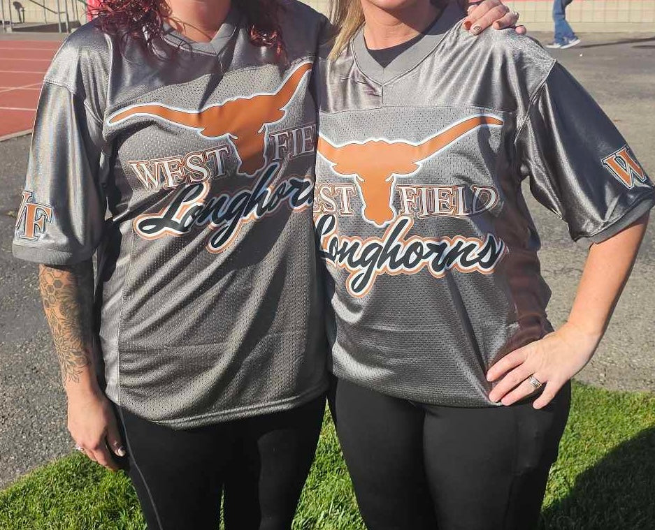The unisex and women’s options are a true jersey mesh material while the toddler and youth options are only available in a cotton style T shirt.
